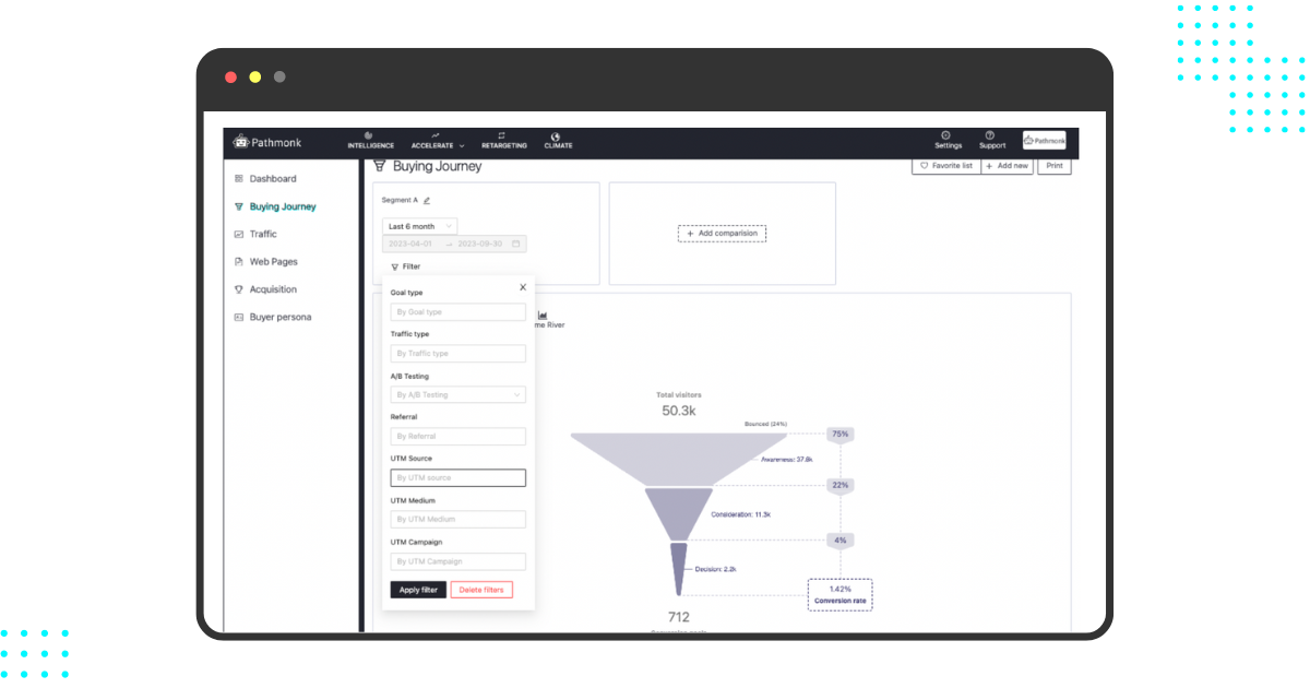 Pathmonk Intelligence helps you filter spam traffic, tackling the complexities of spam and bot traffic with machine learning behavioral patterns.